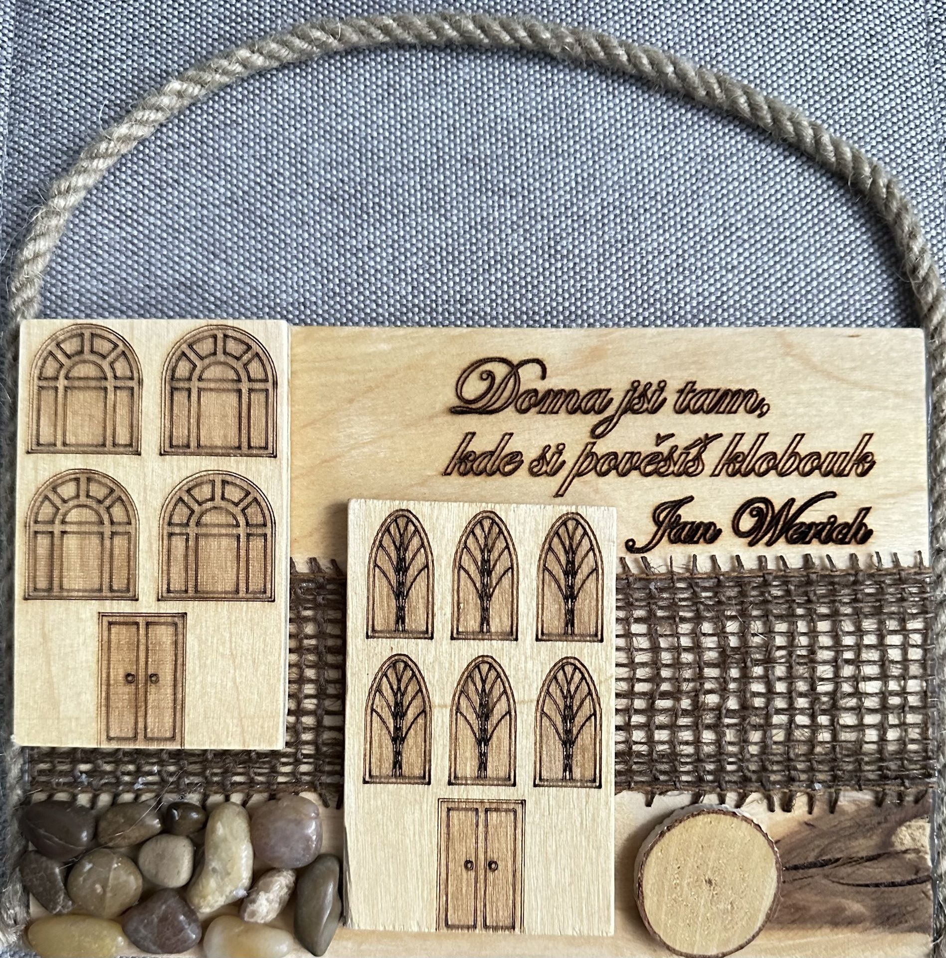 Domov je místo pro rodinu, lásku, pohodu a klid. V tomto duchu jsme vyrobili pár originálních kousků z přírodních materiálů jako je dřevo, kamínky a provázky. Gravírované citáty se váží na pohodu domova. Udělejte radost sobě nebo někomu blízkému. Dekorace je opatřena krouceným provázkem k zavěšení.